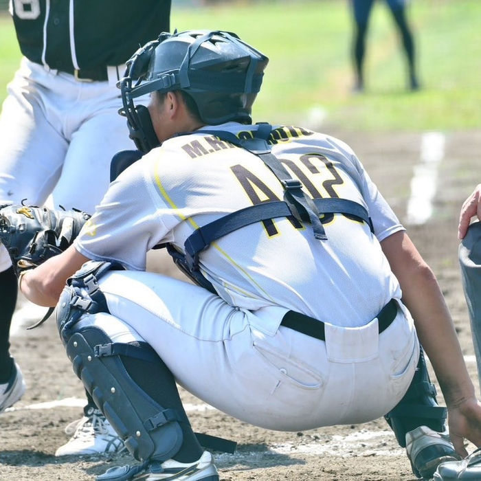 ウエイトトレーニングや捕手でのフットワークを活かして作り上げた下半身がアピールポイント。